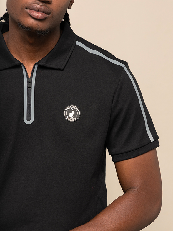 Hit the greens in style with the men's sport short sleeve 1/4 golfer in black, combining elegance with athletic functionality. A custom fit that offers both comfort and a sharp appearance.